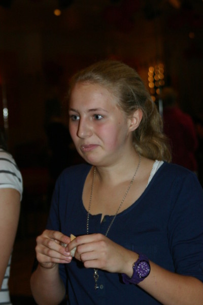 Dann ging's endlich nach einer ersten Tanzrunde mit den Wetten los. Gespannt warteten alle darauf, wer die Wetten denn spielen würde... Aber hier hatte sich das Team um Norbert Janzen etwas ganz Besonderes einfallen lassen. Es mussten natürlich diejenigen die Wetten spielen, die auch ein Interesse daran hatten, sie zu gewinnen, d. h. die auf ihrem Wettzettel mit "Ja" getippt hatten. Bei jeder Wette wurden die Spieler von Glücksfee 'Pia' erneut aus allen Ja-Tippern der jeweiligen Wette gezogen.