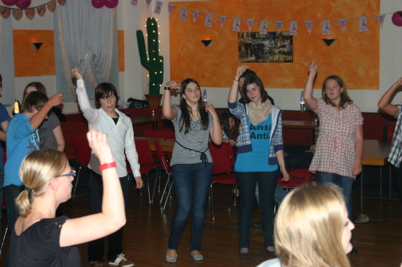 Anschließend lernten alle gemeinsam 2 lustige Tänze, bei denen einige ganz schön ins 'Schwitzen' kamen.