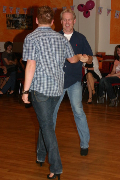 2 Wetten wurden gewonnen und 2 verloren und jetzt kam es darauf an, hatte das Tanztreff-Team es geschafft???? Den ganzen Abend hatten die fleißigen Helfer versucht 'Jungs' dazu zu überreden auf High Heels zu tanzen und das die Mädchen, die nicht zu kleine Füße hatten, ihnen ihre Schuhe mit den hohen Absätzen zu überlassen...