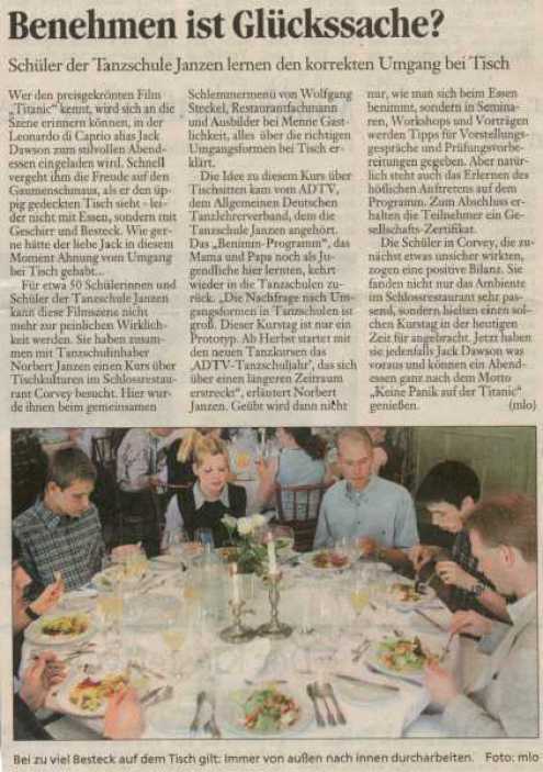 Tischsitten-Seminar im Schlossrestaurant Corvey (2.6.2002)