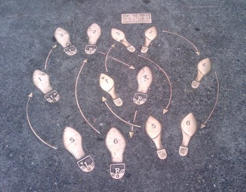 der "Paso Doble" (= "Doppelschritt") mit betontem Aufsetzen von Ferse und Ballen und rhythmischen Gehschritten.