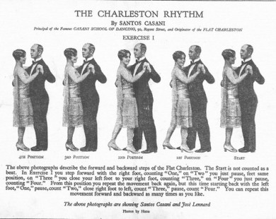 1925 erreichte der Charleston Europa. 1926 war alle Welt charlestonverrückt, 1927 war der Höhepunkt schon überschritten. Als Schautanz blieb der Charleston aber weiterhin beliebt und viele Tanzschule unterrichteten ihn weiter. Daher ist der Charleston bekannter als der Shimmy und der Black Bottom. Um 1926 aber war der Charleston eine ernste Gefahr für die Entwicklung des englischen Stils. Er verzögerte die Fixierung des Quickstep beträchtlich. Doch die Engländer nahmen auch diesen Tanz auf und formten ihn. Aus einem ursprüglich reinen Platztanz machten sie einem flachen progressiven Tanz, aus dem wilden Charleston den flat, progressiv Charleston.
