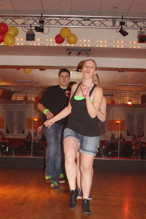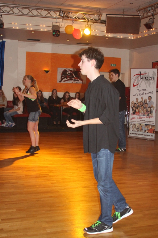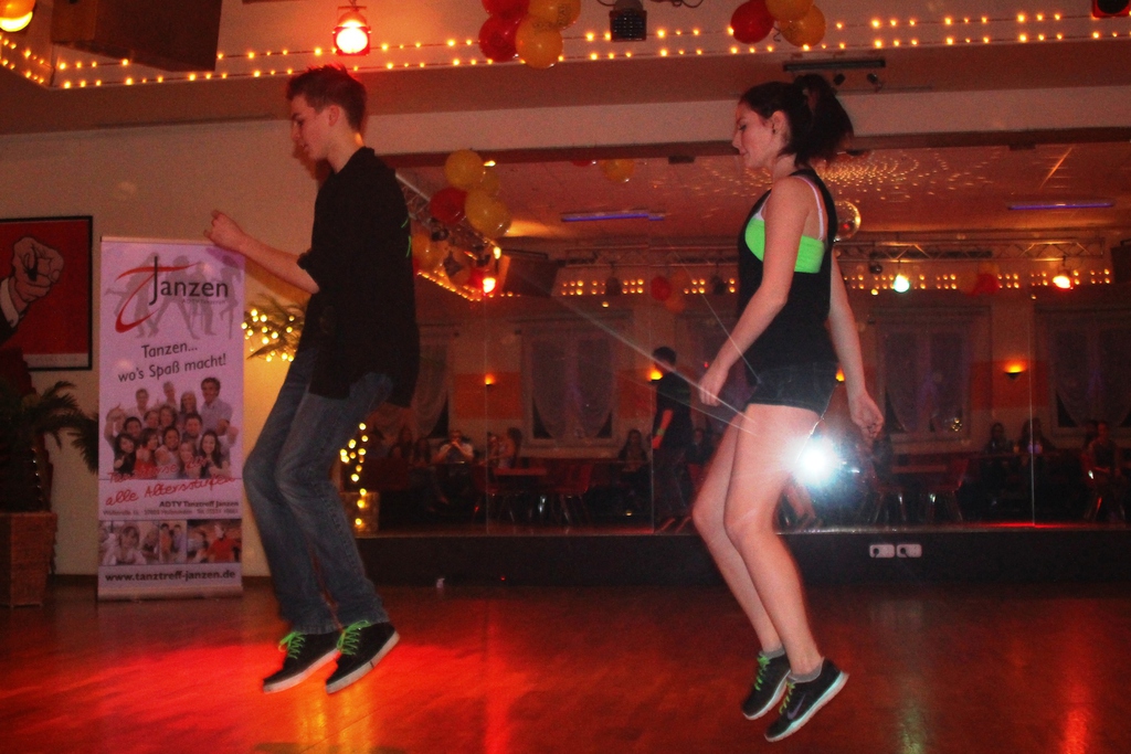 Die fortgeschrittenen Schüler des Tanztreffs zeigen den "Neuen" :) alle Tänze, die im Grundkurs unterrichtet werden: Discofox, Cha Cha Cha, Foxtrott, Jive, Blues, Rumba, Langsamer Walzer, Tango und Wiener Walzer. Samba & Salsa, 2 Tänze, die erst im Fortschrittkurs unterrichten werden, werden auch demonstriert!
